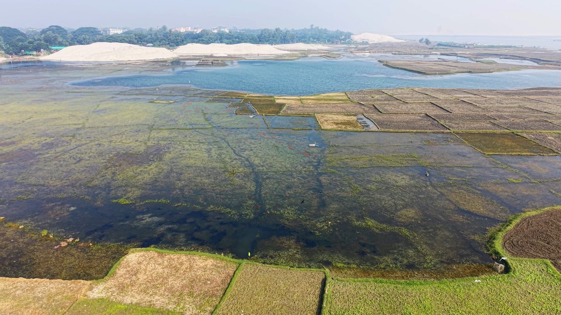 The “China Bandh,” once built to protect the Sirajganj town from floods, now stands almost useless — huge sandbars have risen right beside it, forming permanent land where crops are cultivated, and plots are leased out. Looking from the middle of the bridge, it is hard to tell whether this used to be a river or a vast field.