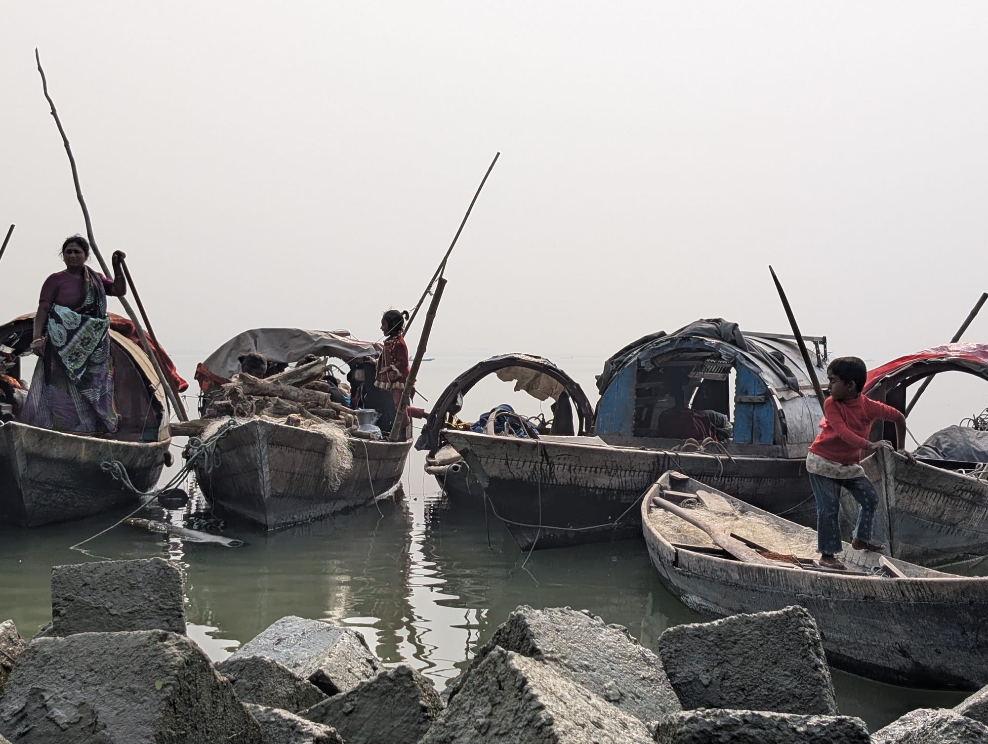 Across all seasons, the river nomads get sick with diarrhea, fever, and constant cold from drinking the river water. If the weather allows, their social life flourishes on the decks. The women gather, the elders speak, and the young sit as an obedient audience. This is where stories are shared, tales are told.
