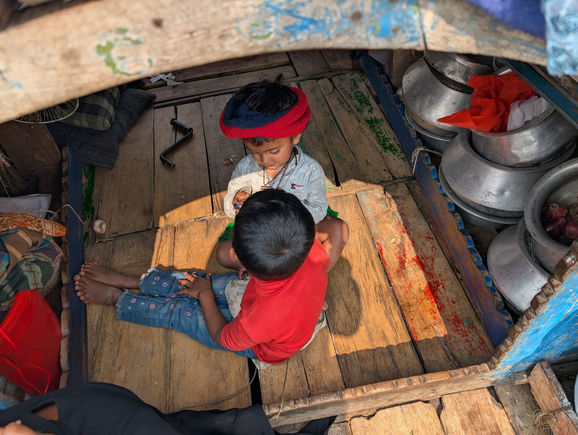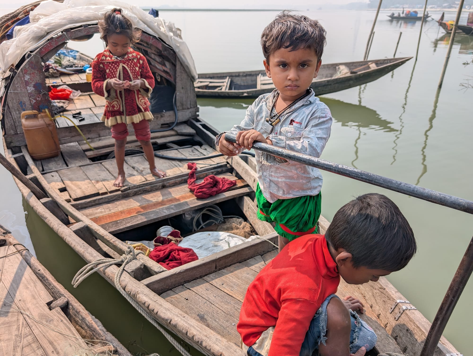For Manta kids, the deck of a boat is their only playground. Growing up on the water means their world of friendship is defined by the neighbors anchored nearby. Photograph: Marzia Hashmi Momo/Netra News